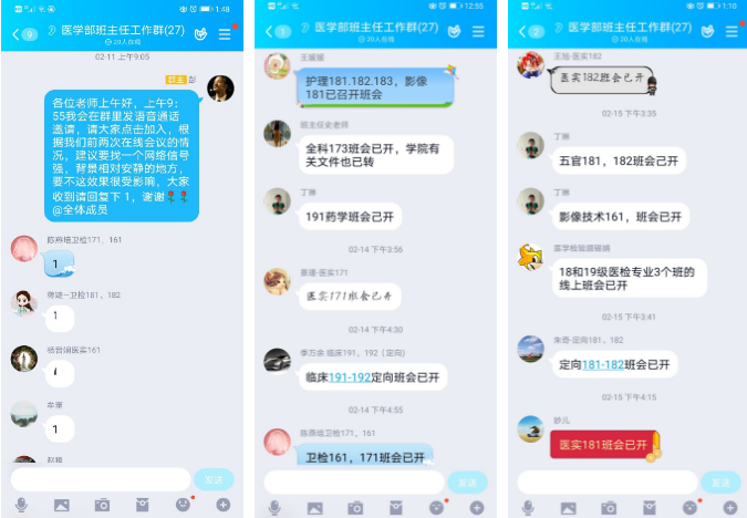 抗“疫”期间,如何将“停课不停学”要求落到实处,学部辅导员提前筹划,他们通过班主任会、班会、学生干部会议,跟学生做新学期网课学习动员,提点学生网课学习注意事项,强调课堂纪律,并督促班委认真履职。认真落实辅导员、班主任每周听课制度,同时组建年级任课教师工作群,及时沟通教学、课堂管理情况。他们每日跟进学生出勤情况,对缺课学生深入了解原因,做好关心和教育,特别是对病假学生追踪排查疫情可能,确保平稳有序。