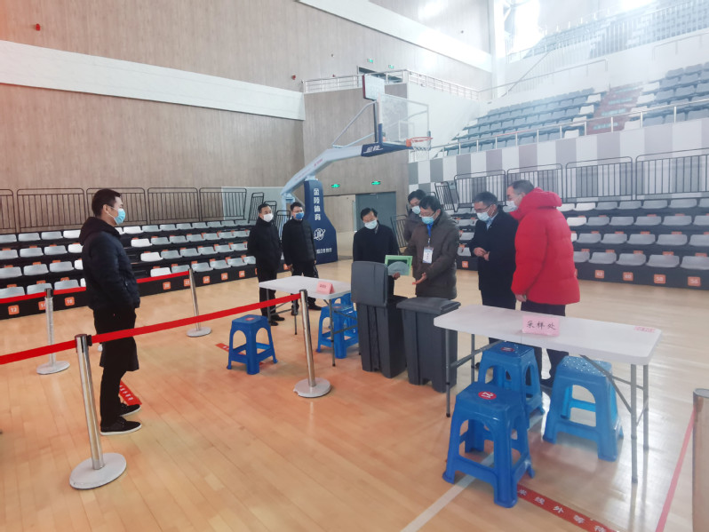 工作组组长苏青一行9人实地考察了校区的核酸检测点、食堂、健康检测隔离点和物资储备仓库等地,详细了解了校区开学师生返校的具体情况。