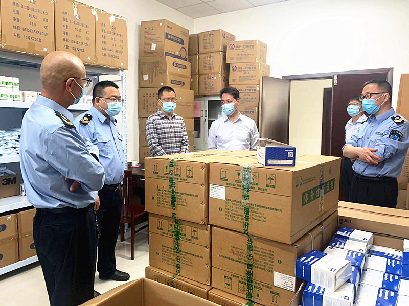 工作组一行人先后实地查看了启东校区卫生科和防疫物资储备仓库。